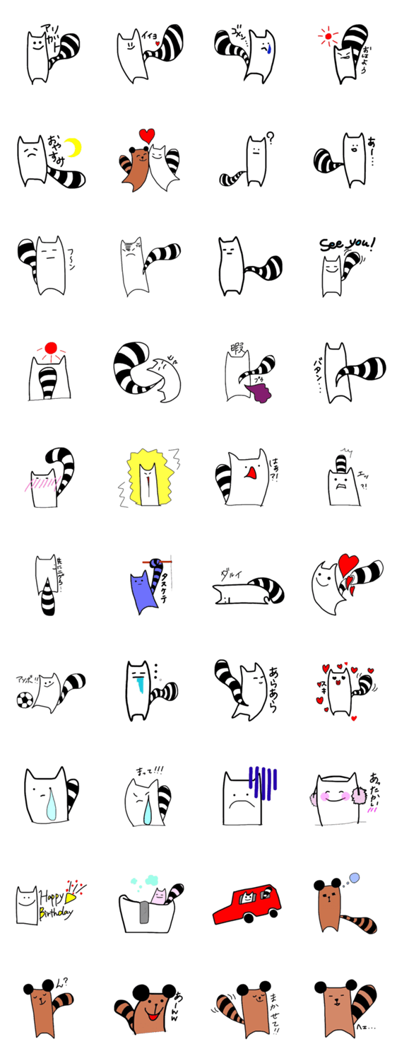 シマネコ NO.1 Hero!! コメントをどうぞ 昔々あるところにアライグマとネコがいました。二人は恋に落ち、二人の間には子供が産まれました。それがこの子です。ハーフの友達もいます。 このスタンプどう思う?!↓クリックで投票♪好き (0)かわいい (0)かっこいい (0)おもしろい (0)使いやすそう (0)欲しい (0)萌え (0)ほっこりする (0)おしゃれ (0)ゆるい (0)こわい (0)ウザい (0)キモい (0)ムカつく (0)持ってる (0)癒される (0)セクシー (0)個性的 (0)私は買わない (0)誰かプレゼントして! (0) 購入・プレゼントする Facebookでシェア Twitterでシェア