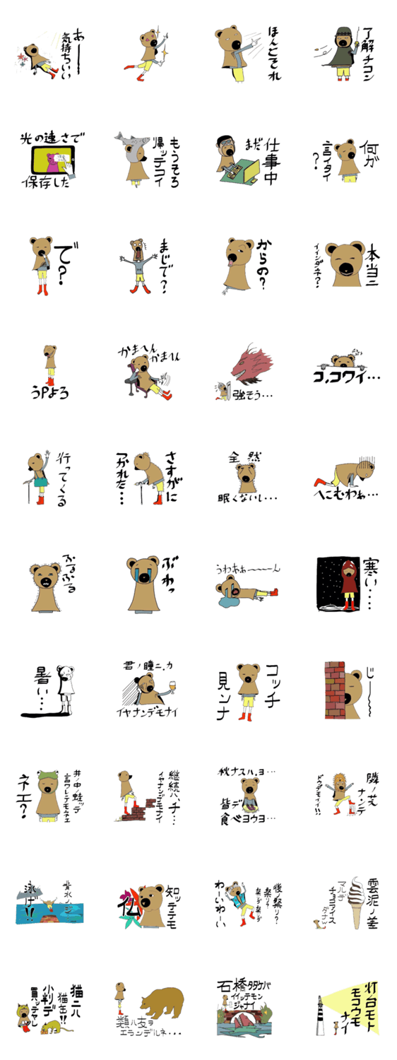 シレット君 gekkouga コメントをどうぞ 彼の名前はシレット君。北海道の秘境にひっそり暮らしています。周りにはヒグマさんが多いのでヒグマの着ぐるみをかぶっています。 このスタンプどう思う?!↓クリックで投票♪好き (0)かわいい (0)かっこいい (0)おもしろい (0)使いやすそう (0)欲しい (0)萌え (0)ほっこりする (0)おしゃれ (0)ゆるい (0)こわい (0)ウザい (0)キモい (0)ムカつく (0)持ってる (0)癒される (0)セクシー (0)個性的 (0)私は買わない (0)誰かプレゼントして! (0) 購入・プレゼントする Facebookでシェア Twitterでシェア