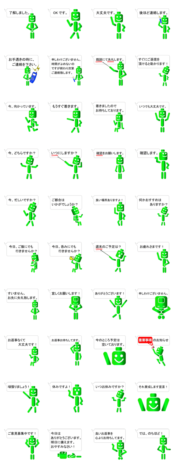 シンプル・スマート・時間短縮の使いやすさ MENTAICO* コメントをどうぞ 台詞が入っておりスタンプPONで済みます!仕事関係の人・目上の人・微妙な距離感の人・照れてしまう人に使ってみて下さい。相手画面に合わせた台詞配置になってます。 このスタンプどう思う?!↓クリックで投票♪好き (0)かわいい (0)かっこいい (0)おもしろい (0)使いやすそう (0)欲しい (0)萌え (0)ほっこりする (0)おしゃれ (0)ゆるい (0)こわい (0)ウザい (0)キモい (0)ムカつく (0)持ってる (0)癒される (0)セクシー (0)個性的 (0)私は買わない (0)誰かプレゼントして! (0) 購入・プレゼントする Facebookでシェア Twitterでシェア