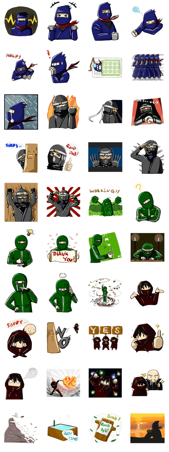 シンプル忍者シリーズ おさかなさん コメントをどうぞ ドジな青忍者、イケメンな灰忍者、どこか抜けてる緑忍者、かわいさ溢れる子供忍者。ナゾの忍者集団スタンプです。 このスタンプどう思う?!↓クリックで投票♪好き (0)かわいい (0)かっこいい (0)おもしろい (0)使いやすそう (0)欲しい (0)萌え (0)ほっこりする (0)おしゃれ (0)ゆるい (0)こわい (0)ウザい (0)キモい (0)ムカつく (0)持ってる (0)癒される (0)セクシー (0)個性的 (0)私は買わない (0)誰かプレゼントして! (0) 購入・プレゼントする Facebookでシェア Twitterでシェア