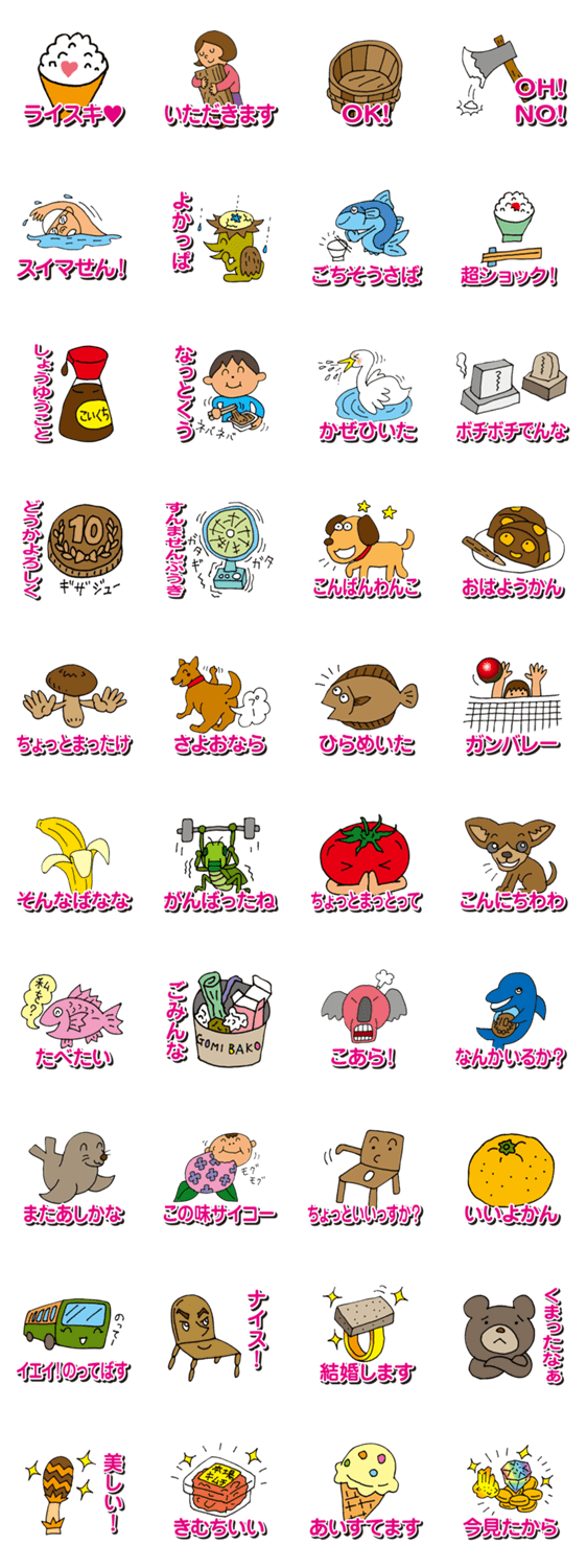 ジャジャ〜ン!ダジャレじゃ のぞう コメントをどうぞ 絵で表したダジャレです。バカバカしいけど楽しいかも。 このスタンプどう思う?!↓クリックで投票♪好き (0)かわいい (0)かっこいい (0)おもしろい (0)使いやすそう (0)欲しい (0)萌え (0)ほっこりする (0)おしゃれ (0)ゆるい (0)こわい (0)ウザい (0)キモい (0)ムカつく (0)持ってる (0)癒される (0)セクシー (0)個性的 (0)私は買わない (0)誰かプレゼントして! (0) 購入・プレゼントする Facebookでシェア Twitterでシェア
