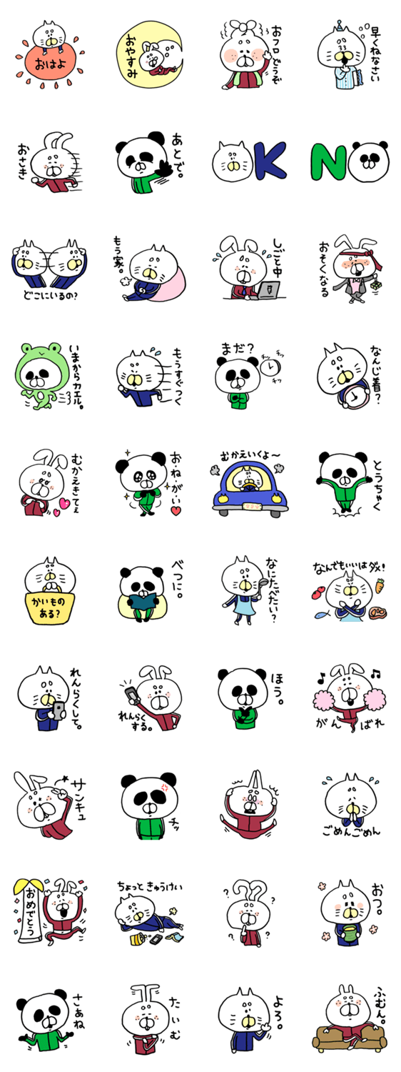 ジャージ組!!! moni コメントをどうぞ 家族間でよく使うワードを、ジャージ姿のパンダ、うさぎ、ねこが代弁します。 このスタンプどう思う?!↓クリックで投票♪好き (0)かわいい (0)かっこいい (0)おもしろい (0)使いやすそう (0)欲しい (0)萌え (0)ほっこりする (0)おしゃれ (0)ゆるい (0)こわい (0)ウザい (0)キモい (0)ムカつく (0)持ってる (0)癒される (0)セクシー (0)個性的 (0)私は買わない (0)誰かプレゼントして! (0) 購入・プレゼントする Facebookでシェア Twitterでシェア