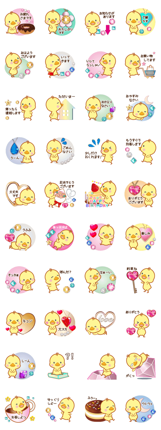 ジュエリーひよこちゃん Makdesign コメントをどうぞ キラッと光る宝石付きのひよこのスタンプです。いろんな方に送れるように敬語と友達に送りやすい一言を入れました♪ このスタンプどう思う?!↓クリックで投票♪好き (0)かわいい (0)かっこいい (0)おもしろい (0)使いやすそう (0)欲しい (0)萌え (0)ほっこりする (0)おしゃれ (0)ゆるい (0)こわい (0)ウザい (0)キモい (0)ムカつく (0)持ってる (0)癒される (0)セクシー (0)個性的 (0)私は買わない (0)誰かプレゼントして! (0) 購入・プレゼントする Facebookでシェア Twitterでシェア