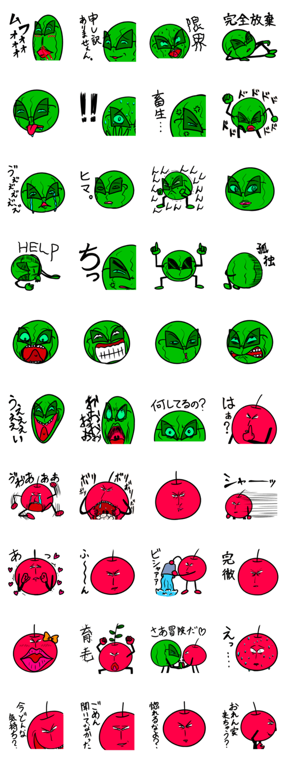 スイカマン&リンゴマン YOUMA コメントをどうぞ あの一部で大人気な「スイカマン&リンゴマン」のスタンプがついに登場だ!!!友達に、彼女or彼氏に、家族に、みんなにこのスタンプで盛り上がろう!!! このスタンプどう思う?!↓クリックで投票♪好き (0)かわいい (0)かっこいい (0)おもしろい (0)使いやすそう (0)欲しい (0)萌え (0)ほっこりする (0)おしゃれ (0)ゆるい (0)こわい (0)ウザい (0)キモい (0)ムカつく (0)持ってる (0)癒される (0)セクシー (0)個性的 (0)私は買わない (0)誰かプレゼントして! (0) 購入・プレゼントする Facebookでシェア Twitterでシェア