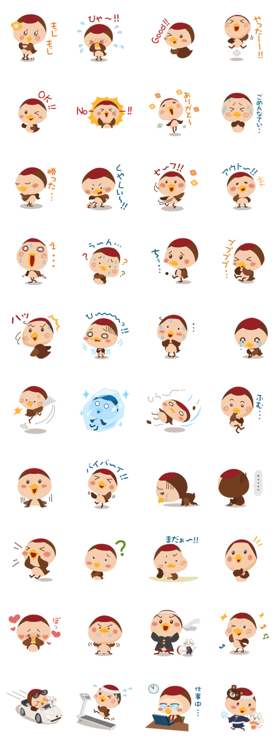 スズメのちょん太 第二弾 ウリタロ コメントをどうぞ 赤いあたまのスズメ、ちょん太のスタンプ第二弾!もっと使えるスタンプ大集合!!第一弾もよろしくね!“チュン太”じゃないよ、“ちょん太”だよ♪ このスタンプどう思う?!↓クリックで投票♪好き (0)かわいい (0)かっこいい (0)おもしろい (0)使いやすそう (0)欲しい (0)萌え (0)ほっこりする (0)おしゃれ (0)ゆるい (0)こわい (0)ウザい (0)キモい (0)ムカつく (0)持ってる (0)癒される (0)セクシー (0)個性的 (0)私は買わない (0)誰かプレゼントして! (0) 購入・プレゼントする Facebookでシェア Twitterでシェア