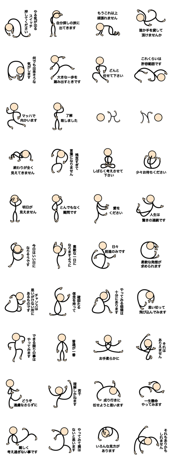 スティックマンワールド miuany コメントをどうぞ とてもしなやかな曲線であなたの今の気持ちをいつもと違った形でスティックマンが代弁します。 このスタンプどう思う?!↓クリックで投票♪好き (0)かわいい (0)かっこいい (0)おもしろい (0)使いやすそう (0)欲しい (0)萌え (0)ほっこりする (0)おしゃれ (0)ゆるい (0)こわい (0)ウザい (0)キモい (0)ムカつく (0)持ってる (0)癒される (0)セクシー (0)個性的 (0)私は買わない (0)誰かプレゼントして! (0) 購入・プレゼントする Facebookでシェア Twitterでシェア
