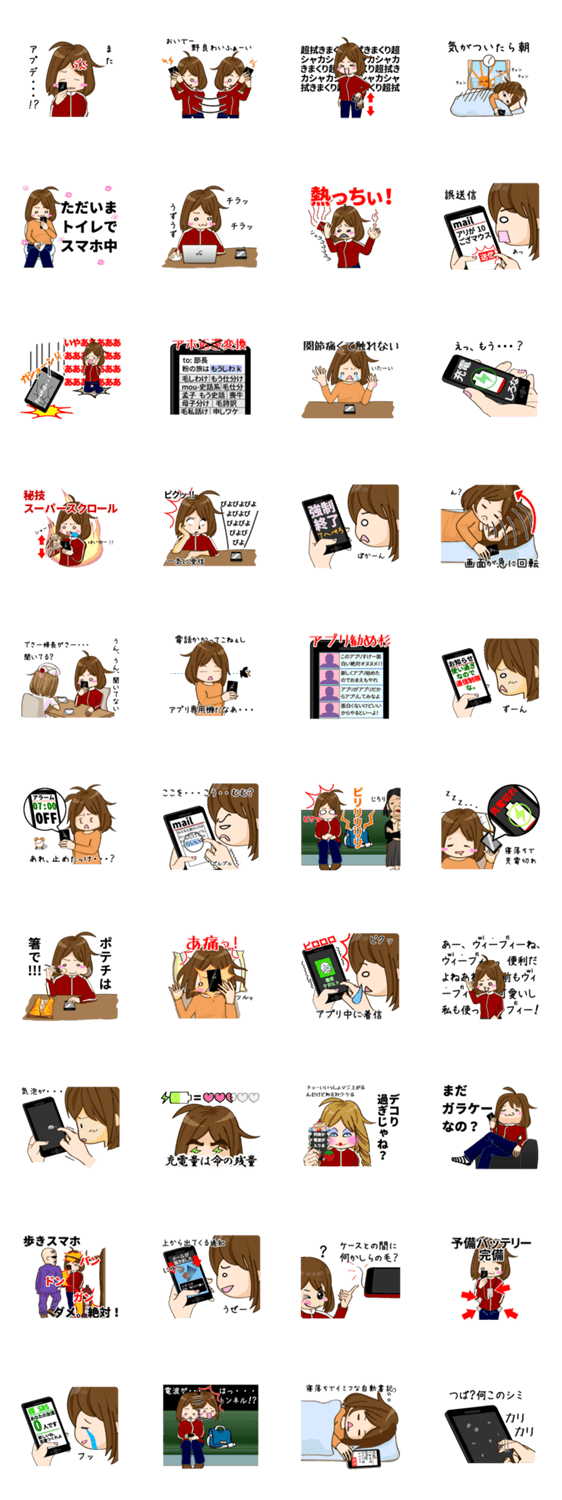 スマホ女子 Colorpalette コメントをどうぞ スマートフォンを片時も手放さない女の子のスタンプです。思わず「あるある!」と言ってしまうスタンプがあればいいなと思います。 このスタンプどう思う?!↓クリックで投票♪好き (0)かわいい (0)かっこいい (0)おもしろい (0)使いやすそう (0)欲しい (0)萌え (0)ほっこりする (0)おしゃれ (0)ゆるい (0)こわい (0)ウザい (0)キモい (0)ムカつく (0)持ってる (0)癒される (0)セクシー (0)個性的 (0)私は買わない (0)誰かプレゼントして! (0) 購入・プレゼントする Facebookでシェア Twitterでシェア