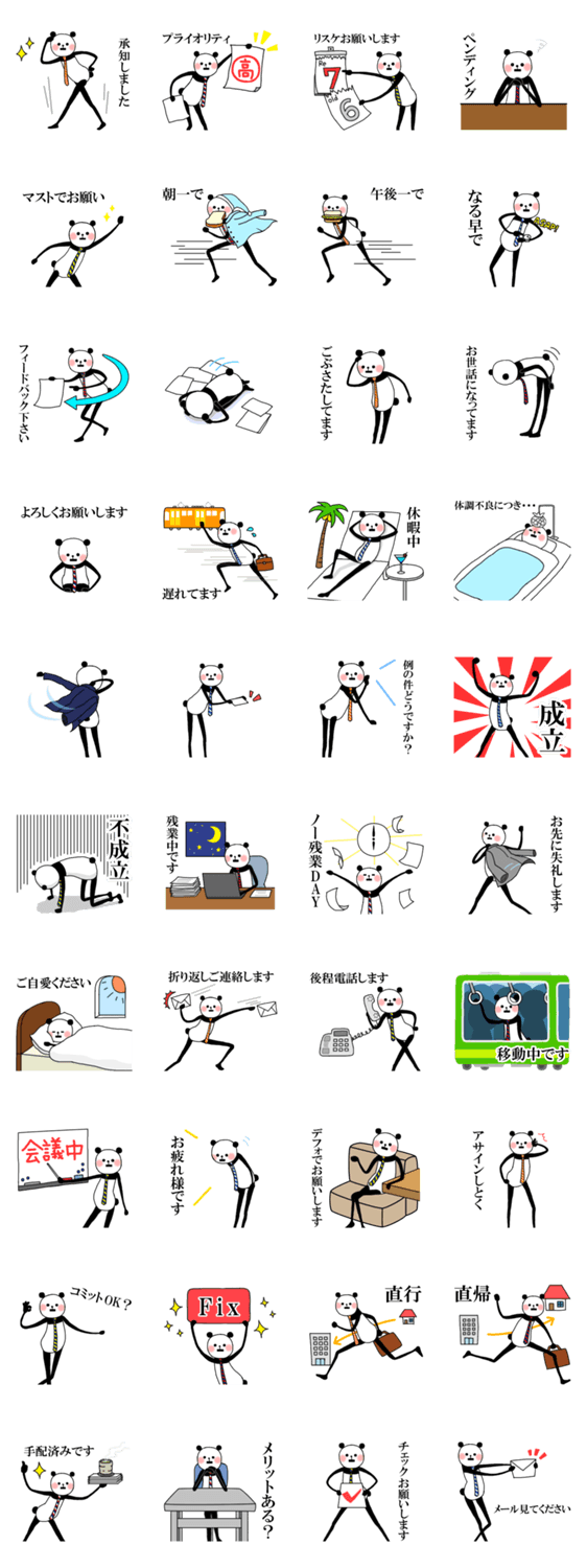 スリムパンダ 株式会社エムティーアイ コメントをどうぞ 『デコとも』のキャラクター「スリムパンダ」が登場!! 表情ひとつ変えないクールでスリムなパンダです。ビジネスシーンでご活用くださいませ。 このスタンプどう思う?!↓クリックで投票♪好き (0)かわいい (0)かっこいい (0)おもしろい (0)使いやすそう (0)欲しい (0)萌え (0)ほっこりする (0)おしゃれ (0)ゆるい (0)こわい (0)ウザい (0)キモい (0)ムカつく (0)持ってる (0)癒される (0)セクシー (0)個性的 (0)私は買わない (0)誰かプレゼントして! (0) 購入・プレゼントする Facebookでシェア Twitterでシェア