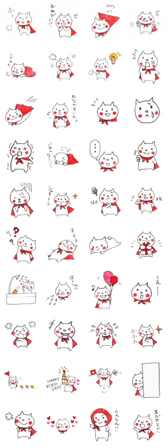 スーパーにゃん Tomomi Shimizu コメントをどうぞ 正義のヒーローに憧れるネコ「スーパーにゃん」。ドジなところもあるけれど、本物のヒーロー目指して頑張ってます。そんなスーパーにゃんがスタンプとしてLINEに参上! このスタンプどう思う?!↓クリックで投票♪好き (0)かわいい (0)かっこいい (0)おもしろい (0)使いやすそう (0)欲しい (0)萌え (0)ほっこりする (0)おしゃれ (0)ゆるい (0)こわい (0)ウザい (0)キモい (0)ムカつく (0)持ってる (0)癒される (0)セクシー (0)個性的 (0)私は買わない (0)誰かプレゼントして! (0) 購入・プレゼントする Facebookでシェア Twitterでシェア