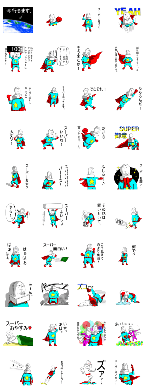 スーパーサイトウのうざい切り餅。 ぼぶ コメントをどうぞ サイトウの切り餅がスーパーヒーローに。たまにかわいい、だけどやはりうざいそんな切り餅です。 このスタンプどう思う?!↓クリックで投票♪好き (0)かわいい (0)かっこいい (0)おもしろい (0)使いやすそう (0)欲しい (0)萌え (0)ほっこりする (0)おしゃれ (0)ゆるい (0)こわい (0)ウザい (0)キモい (0)ムカつく (0)持ってる (0)癒される (0)セクシー (0)個性的 (0)私は買わない (0)誰かプレゼントして! (0) 購入・プレゼントする Facebookでシェア Twitterでシェア