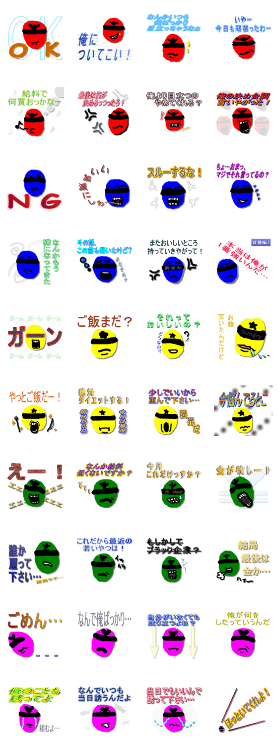 ソレナイジャー HJM コメントをどうぞ 目立ちたがりのレッド、レッドが嫌いなブルー、紅一点のポッチャリ系イエロー、30代後半グリーン、卑屈男のピンク。ソレナイジャーたちはスタンプの場でも活躍できるのか? このスタンプどう思う?!↓クリックで投票♪好き (0)かわいい (0)かっこいい (0)おもしろい (0)使いやすそう (0)欲しい (0)萌え (0)ほっこりする (0)おしゃれ (0)ゆるい (0)こわい (0)ウザい (0)キモい (0)ムカつく (0)持ってる (0)癒される (0)セクシー (0)個性的 (0)私は買わない (0)誰かプレゼントして! (0) 購入・プレゼントする Facebookでシェア Twitterでシェア