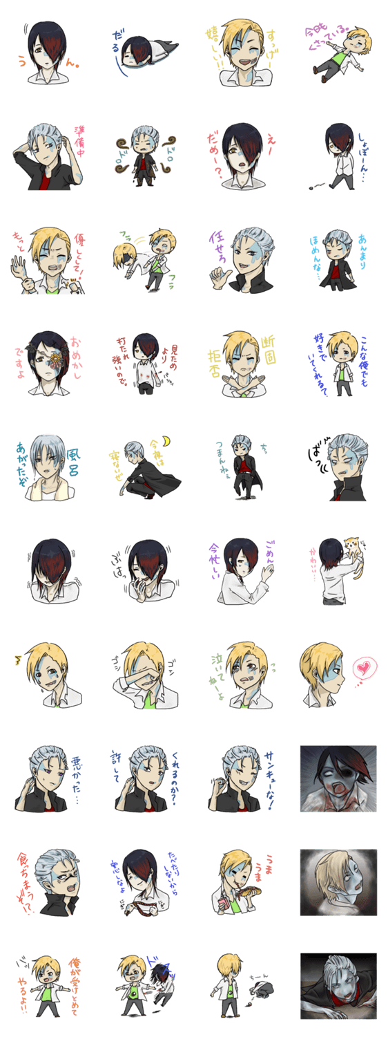 ゾンビヤンキーくん 大山 たつき コメントをどうぞ ゾンビになってしまったヤンキーくんたちです。今日もくさっている! このスタンプどう思う?!↓クリックで投票♪好き (0)かわいい (0)かっこいい (0)おもしろい (0)使いやすそう (0)欲しい (0)萌え (0)ほっこりする (0)おしゃれ (0)ゆるい (0)こわい (0)ウザい (0)キモい (0)ムカつく (0)持ってる (0)癒される (0)セクシー (0)個性的 (0)私は買わない (0)誰かプレゼントして! (0) 購入・プレゼントする Facebookでシェア Twitterでシェア