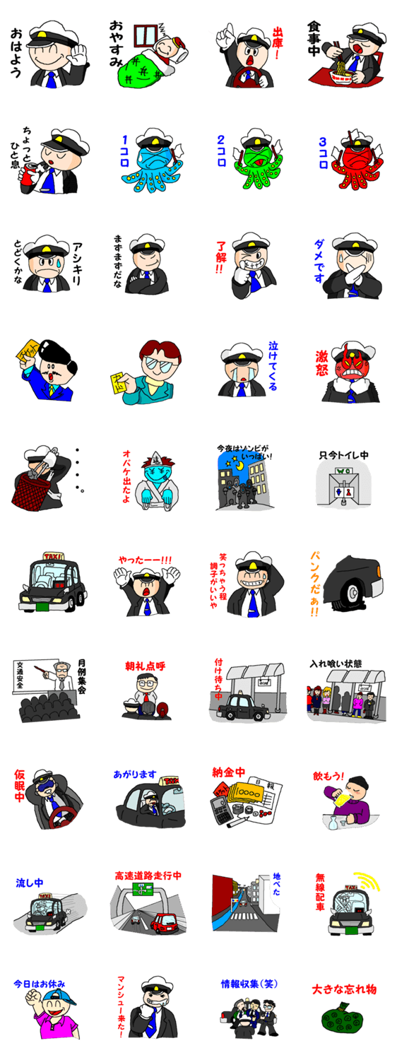 タクシードライバー御用達 KAMEJI コメントをどうぞ 現役タクシードライバーの私が、日常勤務の際「こんなのあったら便利だな」と思った業界用語をメインにしたスタンプです。 このスタンプどう思う?!↓クリックで投票♪好き (0)かわいい (0)かっこいい (0)おもしろい (0)使いやすそう (0)欲しい (0)萌え (0)ほっこりする (0)おしゃれ (0)ゆるい (0)こわい (0)ウザい (0)キモい (0)ムカつく (0)持ってる (0)癒される (0)セクシー (0)個性的 (0)私は買わない (0)誰かプレゼントして! (0) 購入・プレゼントする Facebookでシェア Twitterでシェア