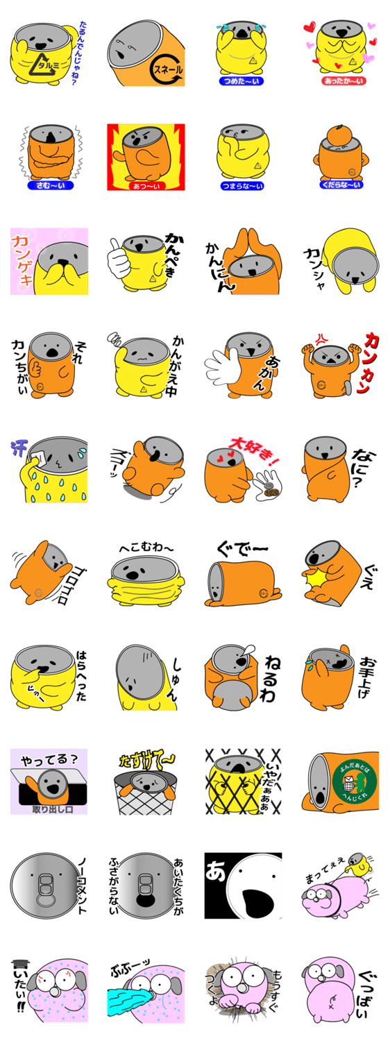 タルミ缶とスネール そしてペットのボトル Ricoppe コメントをどうぞ 空き缶から生まれたキャラクタ登場。たるんだ体のタルミ缶とふてくされたスネール、そしてペットのボトルが、あなたに代わって相手に気持ちをお届けします。 このスタンプどう思う?!↓クリックで投票♪好き (0)かわいい (0)かっこいい (0)おもしろい (0)使いやすそう (0)欲しい (0)萌え (0)ほっこりする (0)おしゃれ (0)ゆるい (0)こわい (0)ウザい (0)キモい (0)ムカつく (0)持ってる (0)癒される (0)セクシー (0)個性的 (0)私は買わない (0)誰かプレゼントして! (0) 購入・プレゼントする Facebookでシェア Twitterでシェア