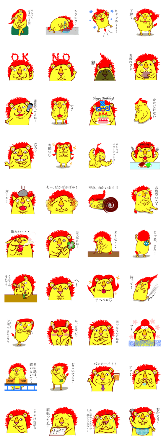 ダイヨン J コメントをどうぞ ダイヨンのスタンプがついに登場しました!!ダイヨンは、いつも明るく人気者のライオンです。さあ、ダイヨンを使って会話を思い切り楽しもう! このスタンプどう思う?!↓クリックで投票♪好き (0)かわいい (0)かっこいい (0)おもしろい (0)使いやすそう (0)欲しい (0)萌え (0)ほっこりする (0)おしゃれ (0)ゆるい (0)こわい (0)ウザい (0)キモい (0)ムカつく (0)持ってる (0)癒される (0)セクシー (0)個性的 (0)私は買わない (0)誰かプレゼントして! (0) 購入・プレゼントする Facebookでシェア Twitterでシェア