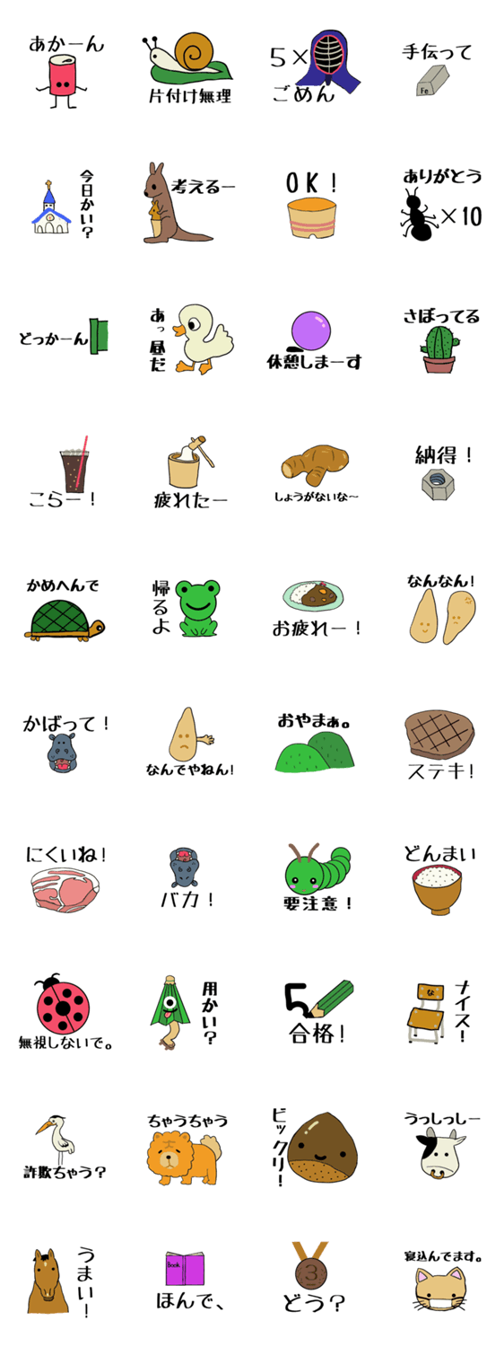 ダジャレってみました。 setsu コメントをどうぞ 会話に使えそうなスタンプをダジャレで表現してみました。(注意:関西弁が混ざっています。) このスタンプどう思う?!↓クリックで投票♪好き (0)かわいい (0)かっこいい (0)おもしろい (0)使いやすそう (0)欲しい (0)萌え (0)ほっこりする (0)おしゃれ (0)ゆるい (0)こわい (0)ウザい (0)キモい (0)ムカつく (0)持ってる (0)癒される (0)セクシー (0)個性的 (0)私は買わない (0)誰かプレゼントして! (0) 購入・プレゼントする Facebookでシェア Twitterでシェア
