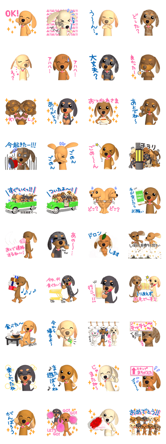 ダックスフレンズ2 Nao コメントをどうぞ 「ダックスフレンズ2」は、日常使いしやすいスタンプです! 色々な毛色のミニチュアダックスを集めました。 このスタンプどう思う?!↓クリックで投票♪好き (0)かわいい (0)かっこいい (0)おもしろい (0)使いやすそう (0)欲しい (0)萌え (0)ほっこりする (0)おしゃれ (0)ゆるい (0)こわい (0)ウザい (0)キモい (0)ムカつく (0)持ってる (0)癒される (0)セクシー (0)個性的 (0)私は買わない (0)誰かプレゼントして! (0) 購入・プレゼントする Facebookでシェア Twitterでシェア