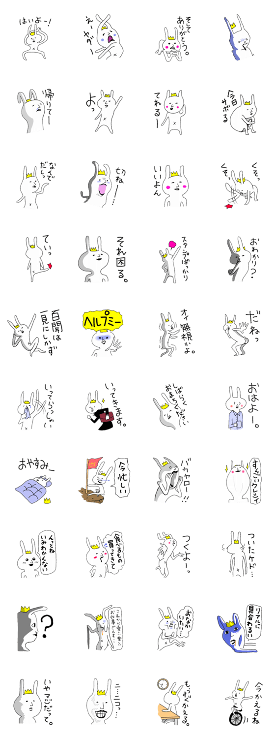 ダメうさぎの王様 EGO コメントをどうぞ 彼は王様でしたが、役にたたなくてスタンプ業で役にたとうと転職してきました。よろしくお願いします。 このスタンプどう思う?!↓クリックで投票♪好き (0)かわいい (0)かっこいい (0)おもしろい (0)使いやすそう (0)欲しい (0)萌え (0)ほっこりする (0)おしゃれ (0)ゆるい (0)こわい (0)ウザい (0)キモい (0)ムカつく (0)持ってる (0)癒される (0)セクシー (0)個性的 (0)私は買わない (0)誰かプレゼントして! (0) 購入・プレゼントする Facebookでシェア Twitterでシェア