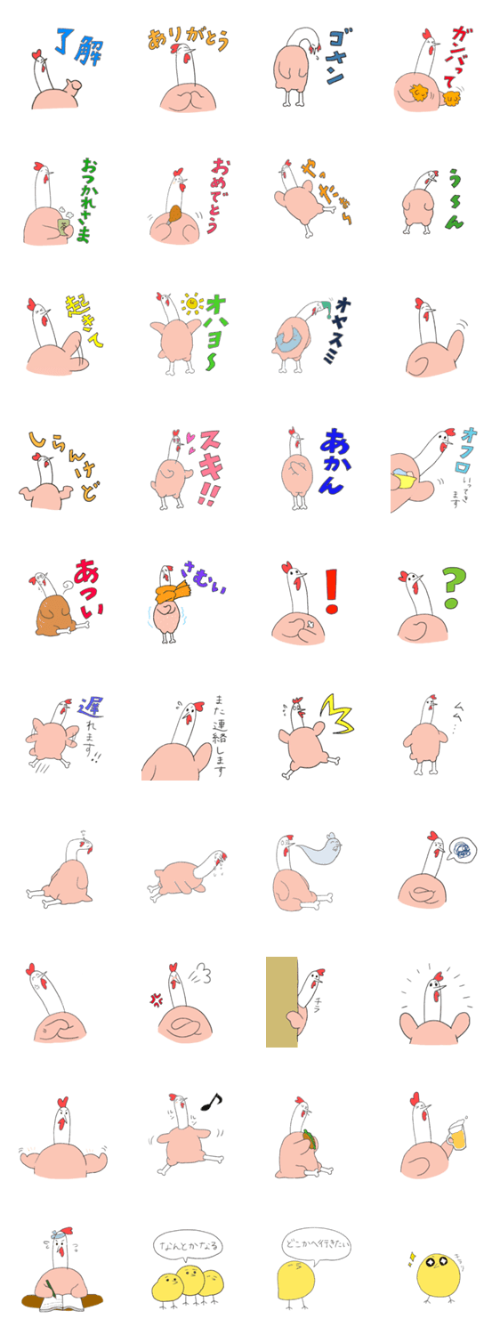 チキンのスタンプ とりむら コメントをどうぞ 普段よく使いそうなセリフやリアクションを集めました。チキンと一緒に伝えよう!すこし悟りを開いたヒヨコもいるよ このスタンプどう思う?!↓クリックで投票♪好き (0)かわいい (0)かっこいい (0)おもしろい (0)使いやすそう (0)欲しい (0)萌え (0)ほっこりする (0)おしゃれ (0)ゆるい (0)こわい (0)ウザい (0)キモい (0)ムカつく (0)持ってる (0)癒される (0)セクシー (0)個性的 (0)私は買わない (0)誰かプレゼントして! (0) 購入・プレゼントする Facebookでシェア Twitterでシェア