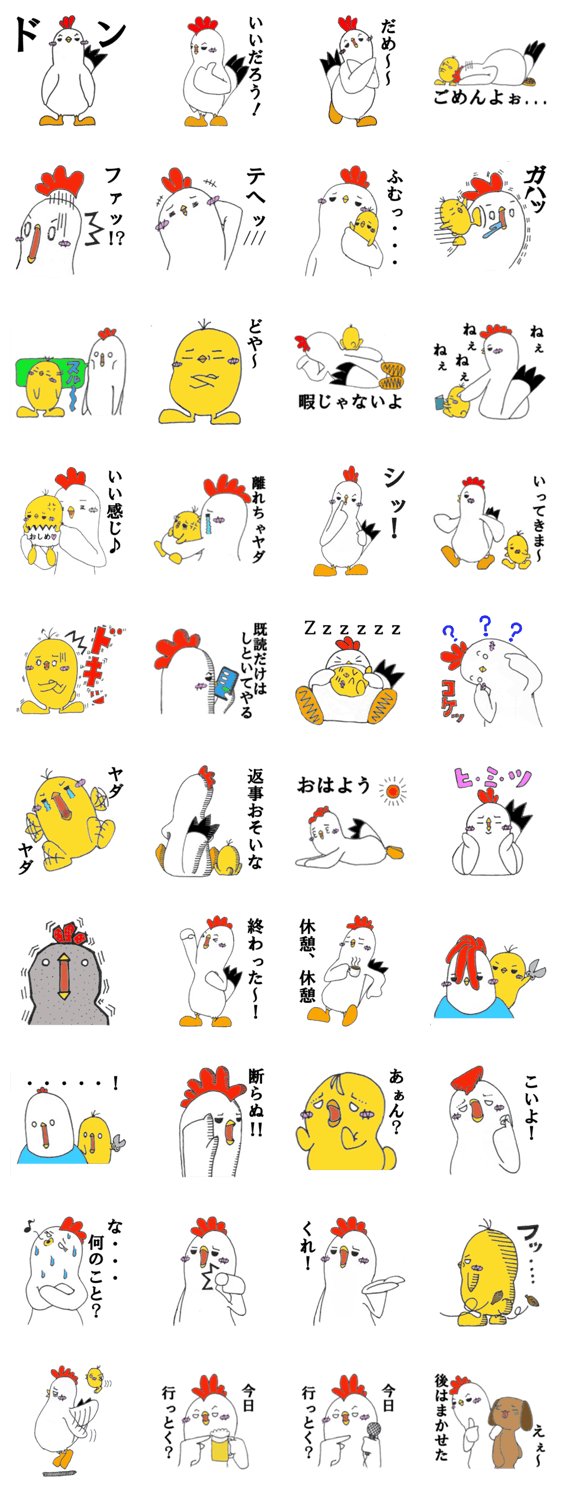 チックとジュニア お殿様 コメントをどうぞ 鶏の親子のスタンプです。いつも喧嘩ばかり、でも本当はとっても仲良し。 このスタンプどう思う?!↓クリックで投票♪好き (0)かわいい (0)かっこいい (0)おもしろい (0)使いやすそう (0)欲しい (0)萌え (0)ほっこりする (0)おしゃれ (0)ゆるい (0)こわい (0)ウザい (0)キモい (0)ムカつく (0)持ってる (0)癒される (0)セクシー (0)個性的 (0)私は買わない (0)誰かプレゼントして! (0) 購入・プレゼントする Facebookでシェア Twitterでシェア