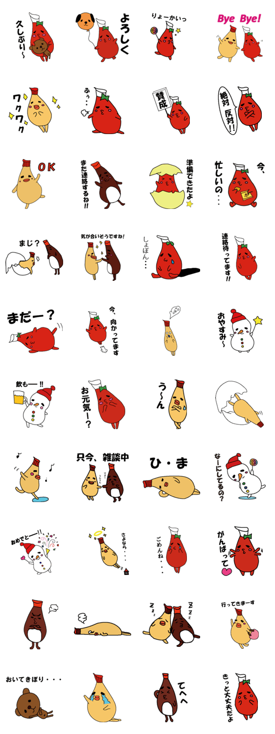チャップリンとプヨマヨと仲間たち hyuganatu コメントをどうぞ 調味料をモチーフに日常的に使えるスタンプにしました。ケチャップのチャップリンとマヨネーズのプヨマヨとお好み焼きソースのガングロさんと練乳のユッキーです。 このスタンプどう思う?!↓クリックで投票♪好き (0)かわいい (0)かっこいい (0)おもしろい (0)使いやすそう (0)欲しい (0)萌え (0)ほっこりする (0)おしゃれ (0)ゆるい (0)こわい (0)ウザい (0)キモい (0)ムカつく (0)持ってる (0)癒される (0)セクシー (0)個性的 (0)私は買わない (0)誰かプレゼントして! (0) 購入・プレゼントする Facebookでシェア Twitterでシェア