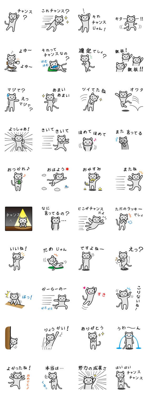 チャンスチャンス hikida コメントをどうぞ 常にチャンスをうかがう猫です。世の中、チャンスでいっぱいです。あなたもこのねこでチャンスを掴みましょう! このスタンプどう思う?!↓クリックで投票♪好き (0)かわいい (0)かっこいい (0)おもしろい (0)使いやすそう (0)欲しい (0)萌え (0)ほっこりする (0)おしゃれ (0)ゆるい (0)こわい (0)ウザい (0)キモい (0)ムカつく (0)持ってる (0)癒される (0)セクシー (0)個性的 (0)私は買わない (0)誰かプレゼントして! (0) 購入・プレゼントする Facebookでシェア Twitterでシェア