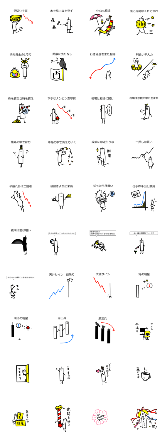 チャートくんの株式投資必勝法 HK コメントをどうぞ 投資歴30年の母が教えてくれた、株式投資必勝法です。チャートくんと一緒に、楽しくお役立てください。 このスタンプどう思う?!↓クリックで投票♪好き (0)かわいい (0)かっこいい (0)おもしろい (0)使いやすそう (0)欲しい (0)萌え (0)ほっこりする (0)おしゃれ (0)ゆるい (0)こわい (0)ウザい (0)キモい (0)ムカつく (0)持ってる (0)癒される (0)セクシー (0)個性的 (0)私は買わない (0)誰かプレゼントして! (0) 購入・プレゼントする Facebookでシェア Twitterでシェア