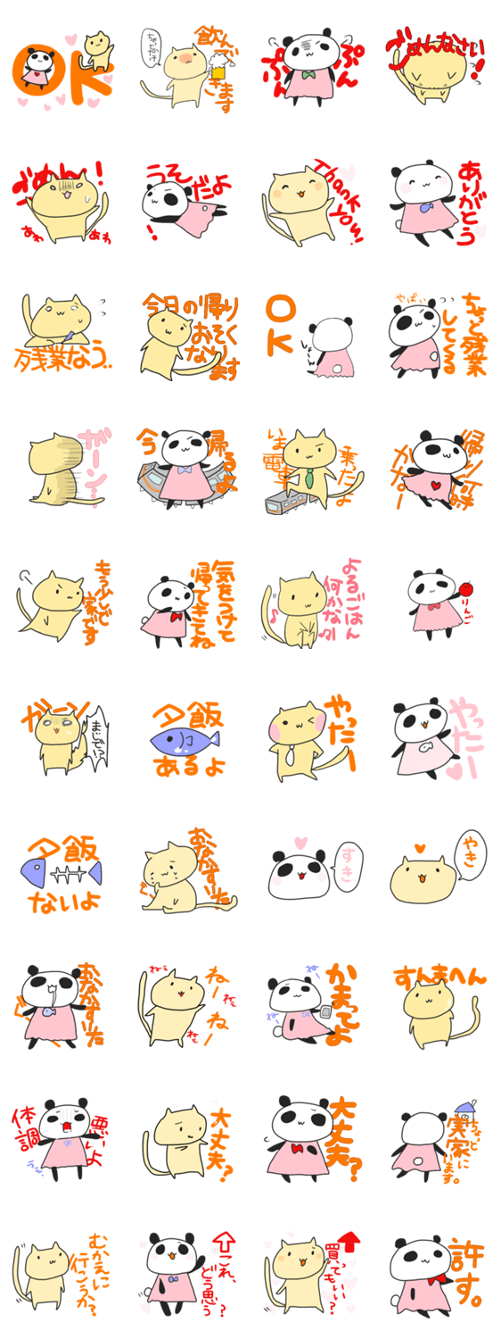 チロルと嫁ちゃん Hiyokomo コメントをどうぞ 夫チロル(ねこ)と妻よめちゃん(パンダ)のスタンプ。ご家族の連絡用に。 このスタンプどう思う?!↓クリックで投票♪好き (0)かわいい (0)かっこいい (0)おもしろい (0)使いやすそう (0)欲しい (0)萌え (0)ほっこりする (0)おしゃれ (0)ゆるい (0)こわい (0)ウザい (0)キモい (0)ムカつく (0)持ってる (0)癒される (0)セクシー (0)個性的 (0)私は買わない (0)誰かプレゼントして! (0) 購入・プレゼントする Facebookでシェア Twitterでシェア
