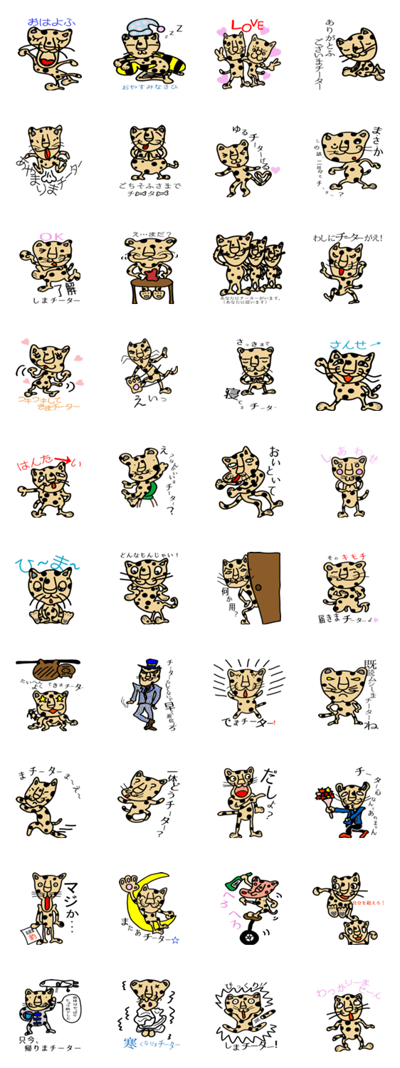 チーターたち CHA コメントをどうぞ かわいいチーターから少し怖いチーターまで、色んなチーターたちのスタンプです。 このスタンプどう思う?!↓クリックで投票♪好き (0)かわいい (0)かっこいい (0)おもしろい (0)使いやすそう (0)欲しい (0)萌え (0)ほっこりする (0)おしゃれ (0)ゆるい (0)こわい (0)ウザい (0)キモい (0)ムカつく (0)持ってる (0)癒される (0)セクシー (0)個性的 (0)私は買わない (0)誰かプレゼントして! (0) 購入・プレゼントする Facebookでシェア Twitterでシェア