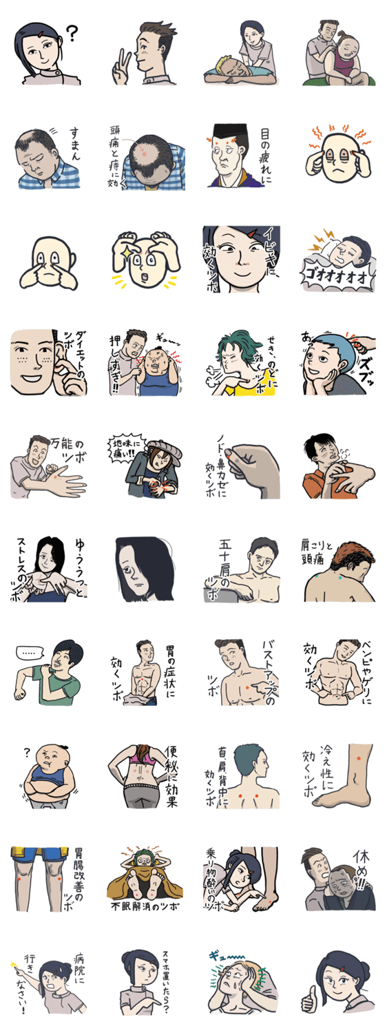 ツボを押そう お豆腐とハイジ コメントをどうぞ 元整体師の協力を基に制作したツボのスタンプ。調子の悪そうな友達が具体的な症状を言い始めたら送りつけよう。(制作:お豆腐・原案:加藤ハイジ) このスタンプどう思う?!↓クリックで投票♪好き (0)かわいい (0)かっこいい (0)おもしろい (0)使いやすそう (0)欲しい (0)萌え (0)ほっこりする (0)おしゃれ (0)ゆるい (0)こわい (0)ウザい (0)キモい (0)ムカつく (0)持ってる (0)癒される (0)セクシー (0)個性的 (0)私は買わない (0)誰かプレゼントして! (0) 購入・プレゼントする Facebookでシェア Twitterでシェア