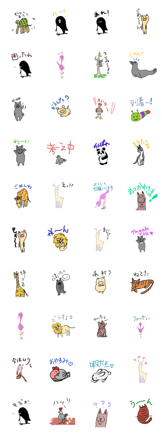 テキトウ動物 booko コメントをどうぞ テキトウに描いた動物です。これで会話できるかも(笑) このスタンプどう思う?!↓クリックで投票♪好き (0)かわいい (0)かっこいい (0)おもしろい (0)使いやすそう (0)欲しい (0)萌え (0)ほっこりする (0)おしゃれ (0)ゆるい (0)こわい (0)ウザい (0)キモい (0)ムカつく (0)持ってる (0)癒される (0)セクシー (0)個性的 (0)私は買わない (0)誰かプレゼントして! (0) 購入・プレゼントする Facebookでシェア Twitterでシェア