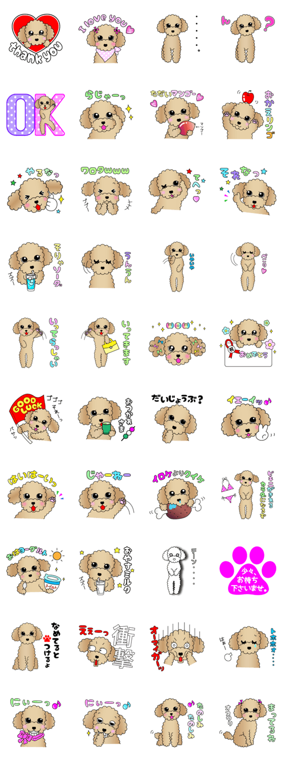 トイプーの巻 日常会話 シオン コメントをどうぞ トイプードルのスタンプ第2弾!日常で使いやすいスタンプを揃えました。もこもこふわふわトイプースタンプで、トークを楽しもう! このスタンプどう思う?!↓クリックで投票♪好き (0)かわいい (0)かっこいい (0)おもしろい (0)使いやすそう (0)欲しい (0)萌え (0)ほっこりする (0)おしゃれ (0)ゆるい (0)こわい (0)ウザい (0)キモい (0)ムカつく (0)持ってる (0)癒される (0)セクシー (0)個性的 (0)私は買わない (0)誰かプレゼントして! (0) 購入・プレゼントする Facebookでシェア Twitterでシェア