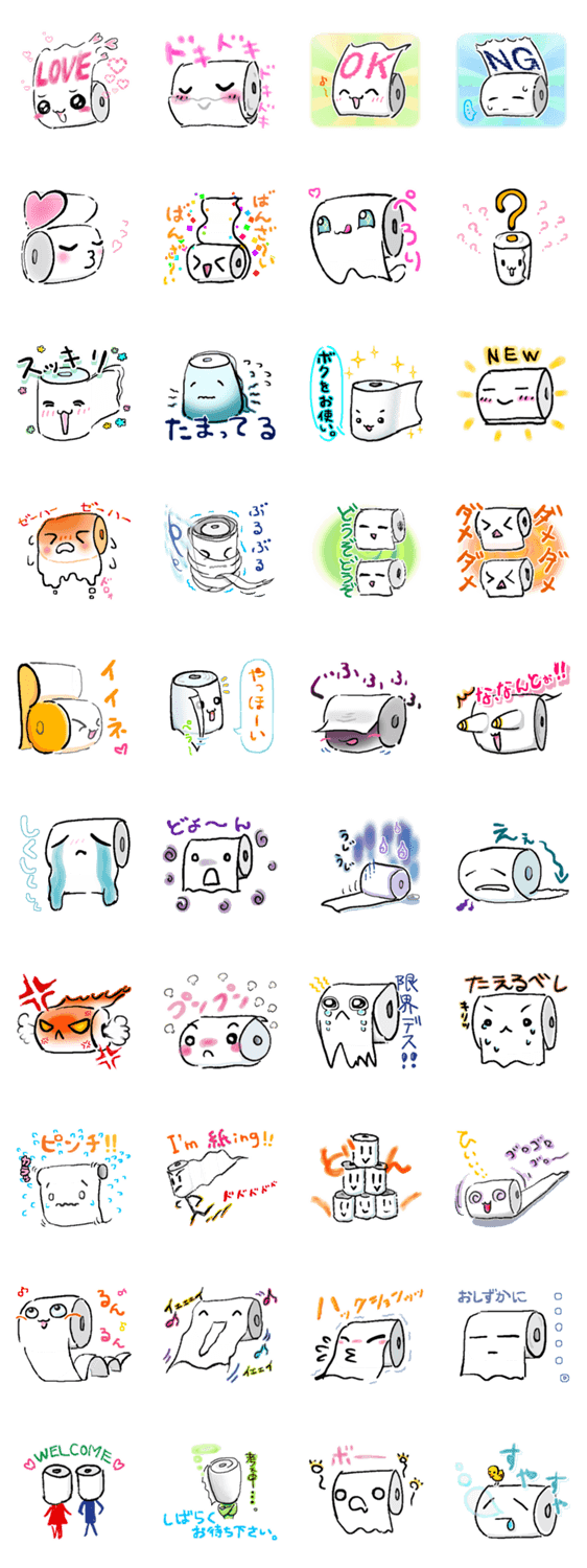 トイレのカミヨさん るなよな コメントをどうぞ トイレのカミヨさんはトイレットペーパーにそっくりな可愛い妖精さんです。イラストや文字に白フチが付いているので様々な背景で使えます。 このスタンプどう思う?!↓クリックで投票♪好き (0)かわいい (0)かっこいい (0)おもしろい (0)使いやすそう (0)欲しい (0)萌え (0)ほっこりする (0)おしゃれ (0)ゆるい (0)こわい (0)ウザい (0)キモい (0)ムカつく (0)持ってる (0)癒される (0)セクシー (0)個性的 (0)私は買わない (0)誰かプレゼントして! (0) 購入・プレゼントする Facebookでシェア Twitterでシェア