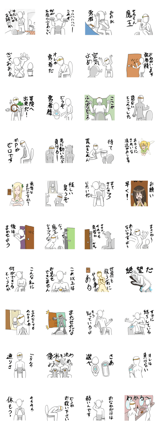 トイレ×ファンタジー回 翡翠蜂 コメントをどうぞ 勇者と魔王の織り成す、トイレを巡る物語。今回はファンタジー回だよ。 このスタンプどう思う?!↓クリックで投票♪好き (0)かわいい (0)かっこいい (0)おもしろい (0)使いやすそう (0)欲しい (0)萌え (0)ほっこりする (0)おしゃれ (0)ゆるい (0)こわい (0)ウザい (0)キモい (0)ムカつく (0)持ってる (0)癒される (0)セクシー (0)個性的 (0)私は買わない (0)誰かプレゼントして! (0) 購入・プレゼントする Facebookでシェア Twitterでシェア