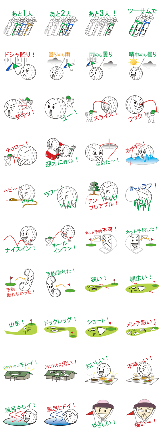 トーキングゴルフボール Jv takechan コメントをどうぞ ゴルフの予約からプレイ後の会話までを擬人化してスタンプにしてみました。日本語版です このスタンプどう思う?!↓クリックで投票♪好き (0)かわいい (0)かっこいい (0)おもしろい (0)使いやすそう (0)欲しい (0)萌え (0)ほっこりする (0)おしゃれ (0)ゆるい (0)こわい (0)ウザい (0)キモい (0)ムカつく (0)持ってる (0)癒される (0)セクシー (0)個性的 (0)私は買わない (0)誰かプレゼントして! (0) 購入・プレゼントする Facebookでシェア Twitterでシェア