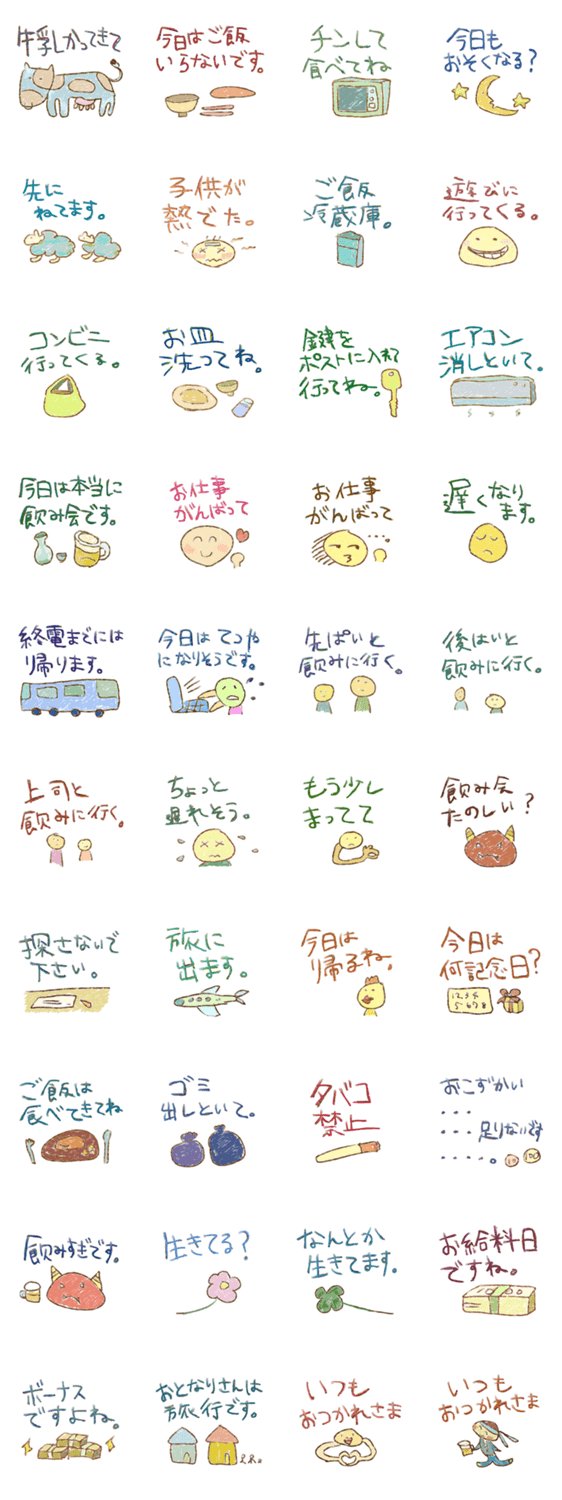 ドキッ!ファミリートーク~置き手紙編~ shiho コメントをどうぞ 家族で使える置き手紙スタンプ!お父さん、お母さん、彼氏、彼女とみんなで楽しく使えます!ゆるいイラストと一緒に気持ちをつたえよう! このスタンプどう思う?!↓クリックで投票♪好き (0)かわいい (0)かっこいい (0)おもしろい (0)使いやすそう (0)欲しい (0)萌え (0)ほっこりする (0)おしゃれ (0)ゆるい (0)こわい (0)ウザい (0)キモい (0)ムカつく (0)持ってる (0)癒される (0)セクシー (0)個性的 (0)私は買わない (0)誰かプレゼントして! (0) 購入・プレゼントする Facebookでシェア Twitterでシェア