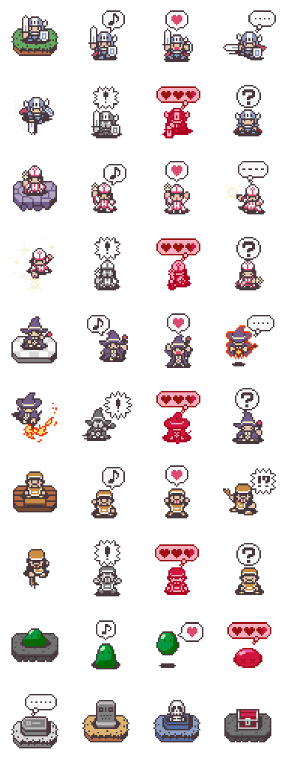 ドット絵ファンタジー 8bits fanatics コメントをどうぞ レトロポップなロールプレイングゲーム風dotスタンプ。RPGでおなじみの勇者、僧侶、魔法使い、商人…その他にも!? このスタンプどう思う?!↓クリックで投票♪好き (0)かわいい (0)かっこいい (0)おもしろい (0)使いやすそう (0)欲しい (0)萌え (0)ほっこりする (0)おしゃれ (0)ゆるい (0)こわい (0)ウザい (0)キモい (0)ムカつく (0)持ってる (0)癒される (0)セクシー (0)個性的 (0)私は買わない (0)誰かプレゼントして! (0) 購入・プレゼントする Facebookでシェア Twitterでシェア