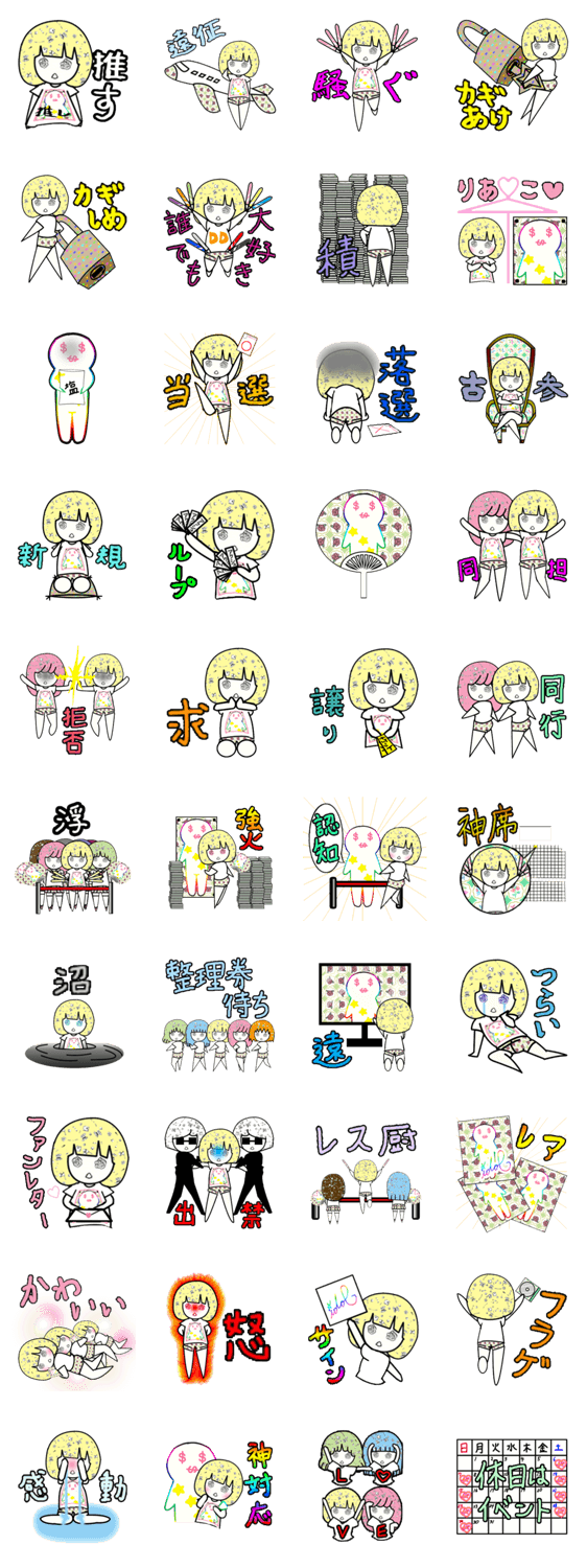 ドルヲタちゃん ぴぃ太ぱん コメントをどうぞ アイドルヲタクのスタンプ このスタンプどう思う?!↓クリックで投票♪好き (0)かわいい (0)かっこいい (0)おもしろい (0)使いやすそう (0)欲しい (0)萌え (0)ほっこりする (0)おしゃれ (0)ゆるい (0)こわい (0)ウザい (0)キモい (0)ムカつく (0)持ってる (0)癒される (0)セクシー (0)個性的 (0)私は買わない (0)誰かプレゼントして! (0) 購入・プレゼントする Facebookでシェア Twitterでシェア