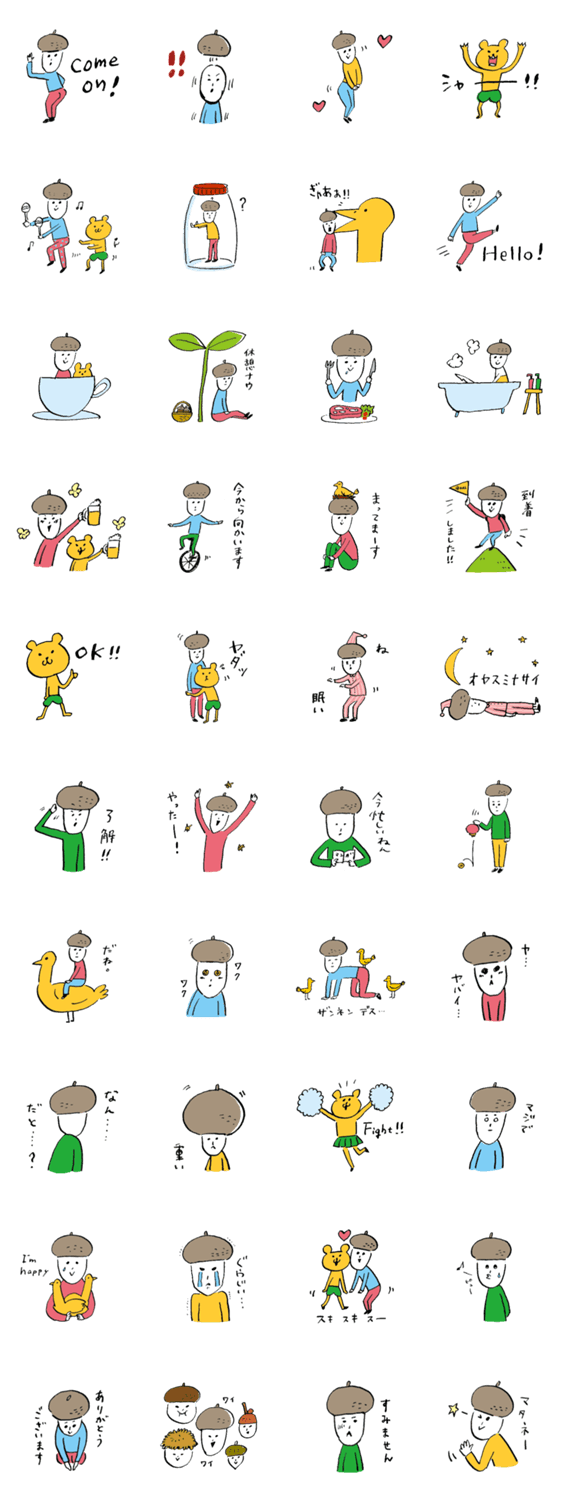 ドン・グリ男 Chiriyama コメントをどうぞ ドン・グリ男(どん・ぐりお)は、ドングリ村からやってきた愉快なキャラクター。グリ男と友達のクマ太郎が、あなたのトークをおちゃめでちょっとシュールに彩ります。 このスタンプどう思う?!↓クリックで投票♪好き (0)かわいい (0)かっこいい (0)おもしろい (0)使いやすそう (0)欲しい (0)萌え (0)ほっこりする (0)おしゃれ (0)ゆるい (0)こわい (0)ウザい (0)キモい (0)ムカつく (0)持ってる (0)癒される (0)セクシー (0)個性的 (0)私は買わない (0)誰かプレゼントして! (0) 購入・プレゼントする Facebookでシェア Twitterでシェア