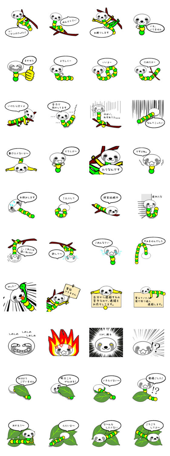 ナマケムシ。 A & A コメントをどうぞ 怠け者の毛虫「ナマケムシ」のスタンプです。怠けたいとき、やる気がでないとき、めんどくさいときに使えるスタンプを集めました。 このスタンプどう思う?!↓クリックで投票♪好き (0)かわいい (0)かっこいい (0)おもしろい (0)使いやすそう (0)欲しい (0)萌え (0)ほっこりする (0)おしゃれ (0)ゆるい (0)こわい (0)ウザい (0)キモい (0)ムカつく (0)持ってる (0)癒される (0)セクシー (0)個性的 (0)私は買わない (0)誰かプレゼントして! (0) 購入・プレゼントする Facebookでシェア Twitterでシェア