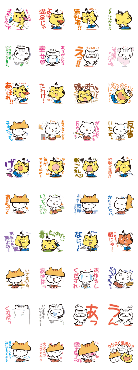 ニャンコござる弁 じゃじゃぽん コメントをどうぞ ネコのお殿様、お侍さん、忍者 による、ほのぼの時代劇風ござる弁スタンプ!丁寧でどこかゆるいござる弁!現代のトークに古き良き日本の風情をかわいく盛り込んじゃおう! このスタンプどう思う?!↓クリックで投票♪好き (0)かわいい (0)かっこいい (0)おもしろい (0)使いやすそう (0)欲しい (0)萌え (0)ほっこりする (0)おしゃれ (0)ゆるい (0)こわい (0)ウザい (0)キモい (0)ムカつく (0)持ってる (0)癒される (0)セクシー (0)個性的 (0)私は買わない (0)誰かプレゼントして! (0) 購入・プレゼントする Facebookでシェア Twitterでシェア