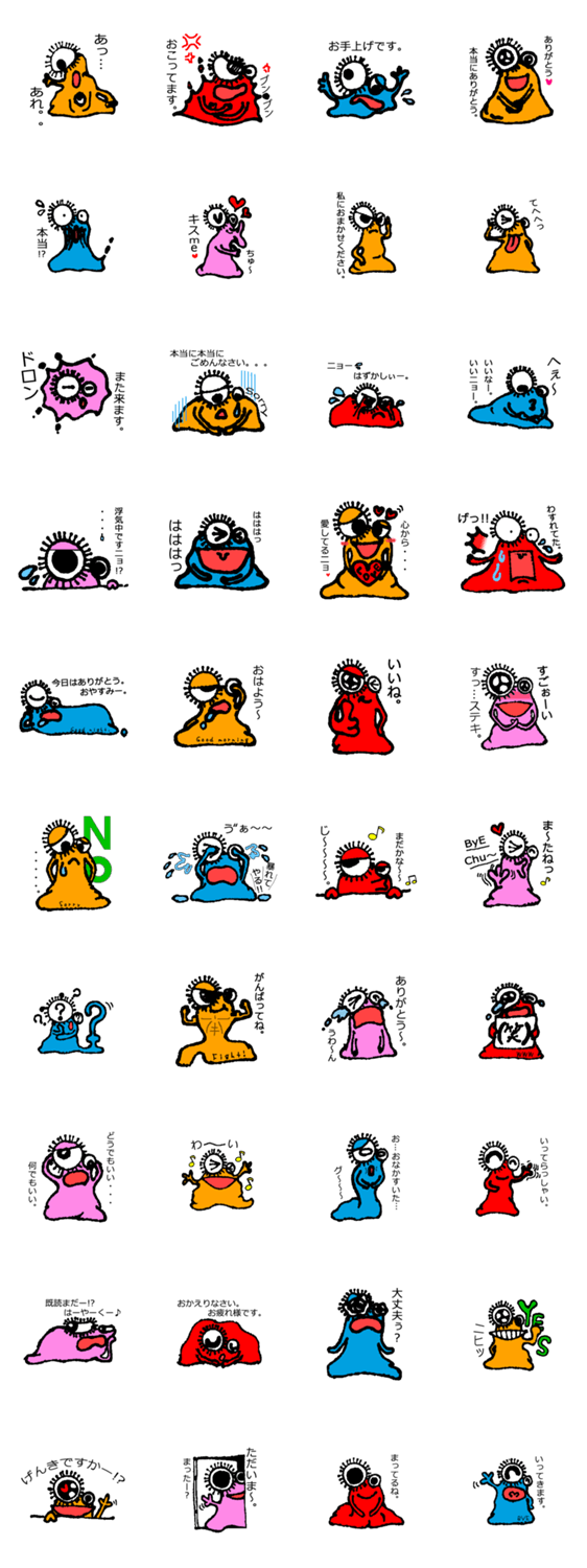 ニョロリ motomasa コメントをどうぞ ニョローリラ星の生命体。好奇心旺盛で人とのコミュニケーションをとるのが得意。 このスタンプどう思う?!↓クリックで投票♪好き (0)かわいい (0)かっこいい (0)おもしろい (0)使いやすそう (0)欲しい (0)萌え (0)ほっこりする (0)おしゃれ (0)ゆるい (0)こわい (0)ウザい (0)キモい (0)ムカつく (0)持ってる (0)癒される (0)セクシー (0)個性的 (0)私は買わない (0)誰かプレゼントして! (0) 購入・プレゼントする Facebookでシェア Twitterでシェア
