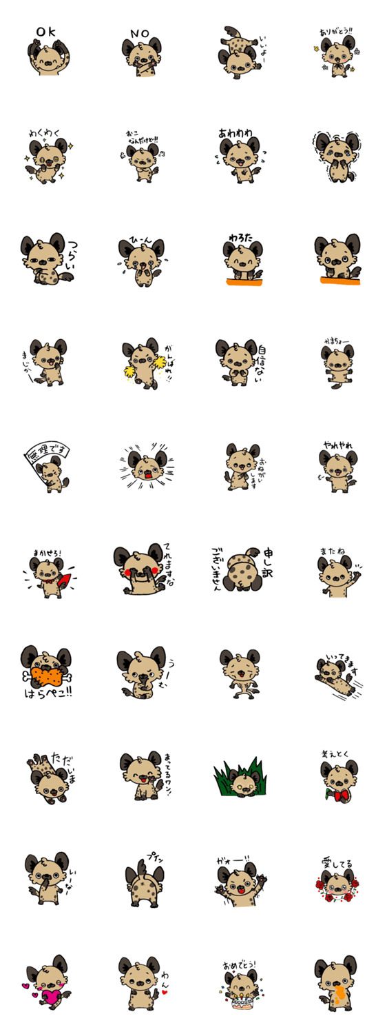 ハイエナのダップーちゃん mirin コメントをどうぞ ブチハイエナのダップーちゃんが可愛く気持ちを伝えます このスタンプどう思う?!↓クリックで投票♪好き (0)かわいい (0)かっこいい (0)おもしろい (0)使いやすそう (0)欲しい (0)萌え (0)ほっこりする (0)おしゃれ (0)ゆるい (0)こわい (0)ウザい (0)キモい (0)ムカつく (0)持ってる (0)癒される (0)セクシー (0)個性的 (0)私は買わない (0)誰かプレゼントして! (0) 購入・プレゼントする Facebookでシェア Twitterでシェア