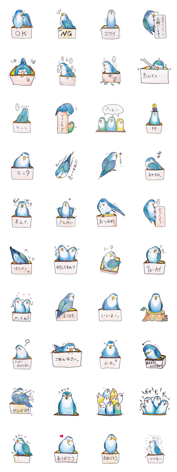 ハコインコ blue love bird コメントをどうぞ 箱に住んでいるコザクラインコです。 このスタンプどう思う?!↓クリックで投票♪好き (0)かわいい (0)かっこいい (0)おもしろい (0)使いやすそう (0)欲しい (0)萌え (0)ほっこりする (0)おしゃれ (0)ゆるい (0)こわい (0)ウザい (0)キモい (0)ムカつく (0)持ってる (0)癒される (0)セクシー (0)個性的 (0)私は買わない (0)誰かプレゼントして! (0) 購入・プレゼントする Facebookでシェア Twitterでシェア