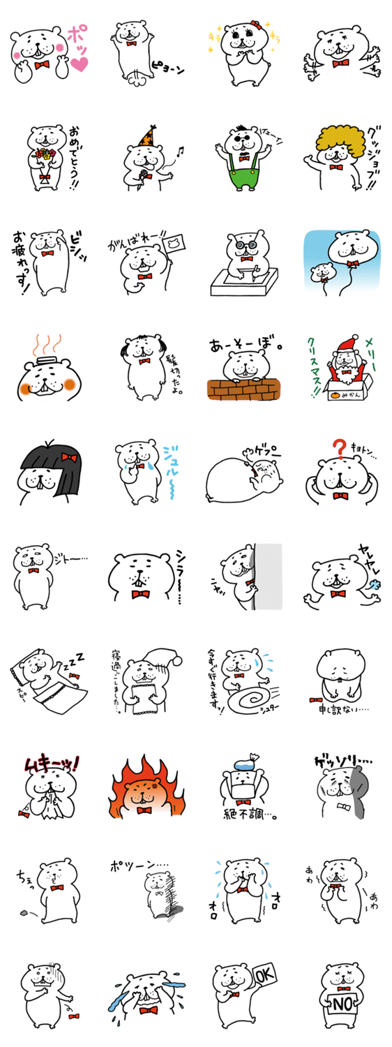 ハムくま kobato コメントをどうぞ ハムスターでもなく、くまでもない。ちょっと変テコなキャラ「ハムくま」のゆるーいスタンプです。 このスタンプどう思う?!↓クリックで投票♪好き (0)かわいい (0)かっこいい (0)おもしろい (0)使いやすそう (0)欲しい (0)萌え (0)ほっこりする (0)おしゃれ (0)ゆるい (0)こわい (0)ウザい (0)キモい (0)ムカつく (0)持ってる (0)癒される (0)セクシー (0)個性的 (0)私は買わない (0)誰かプレゼントして! (0) 購入・プレゼントする Facebookでシェア Twitterでシェア
