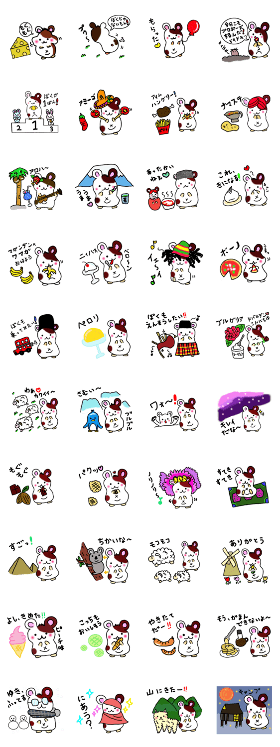 ハムちゃん旅行に行く in ワールド ムーブオン コメントをどうぞ ハムちゃんの旅先でのいろいろな日常を描きました。みなさんにも楽しんでいただけますように... このスタンプどう思う?!↓クリックで投票♪好き (0)かわいい (0)かっこいい (0)おもしろい (0)使いやすそう (0)欲しい (0)萌え (0)ほっこりする (0)おしゃれ (0)ゆるい (0)こわい (0)ウザい (0)キモい (0)ムカつく (0)持ってる (0)癒される (0)セクシー (0)個性的 (0)私は買わない (0)誰かプレゼントして! (0) 購入・プレゼントする Facebookでシェア Twitterでシェア