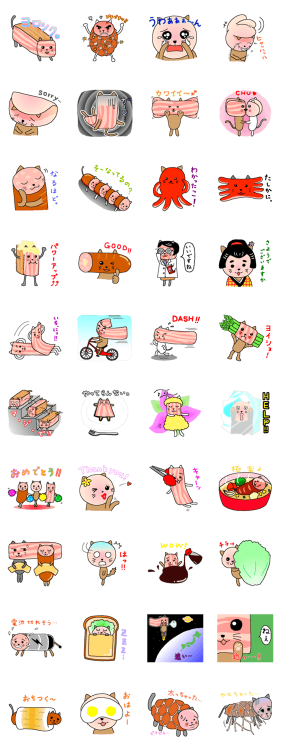 ハム・ベーコン・ウィンナー猫大集合 kuina コメントをどうぞ ハム、ベーコン、ウィンナーの形をしたネコ達のにぎやかなスタンプです。 このスタンプどう思う?!↓クリックで投票♪好き (0)かわいい (0)かっこいい (0)おもしろい (0)使いやすそう (0)欲しい (0)萌え (0)ほっこりする (0)おしゃれ (0)ゆるい (0)こわい (0)ウザい (0)キモい (0)ムカつく (0)持ってる (0)癒される (0)セクシー (0)個性的 (0)私は買わない (0)誰かプレゼントして! (0) 購入・プレゼントする Facebookでシェア Twitterでシェア