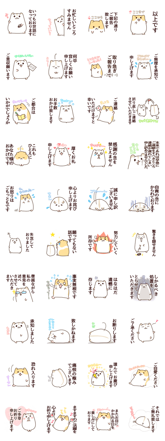 ハム公の言いたいだけ-ビジネス会話- あやよし コメントをどうぞ ビジネスメールでよく見かける言葉を使いたがるジャンガリアンハムスター&ゴールデンハムスター。丁寧な日本語とおもいきやなんかゆるい このスタンプどう思う?!↓クリックで投票♪好き (0)かわいい (0)かっこいい (0)おもしろい (0)使いやすそう (0)欲しい (0)萌え (0)ほっこりする (0)おしゃれ (0)ゆるい (0)こわい (0)ウザい (0)キモい (0)ムカつく (0)持ってる (0)癒される (0)セクシー (0)個性的 (0)私は買わない (0)誰かプレゼントして! (0) 購入・プレゼントする Facebookでシェア Twitterでシェア