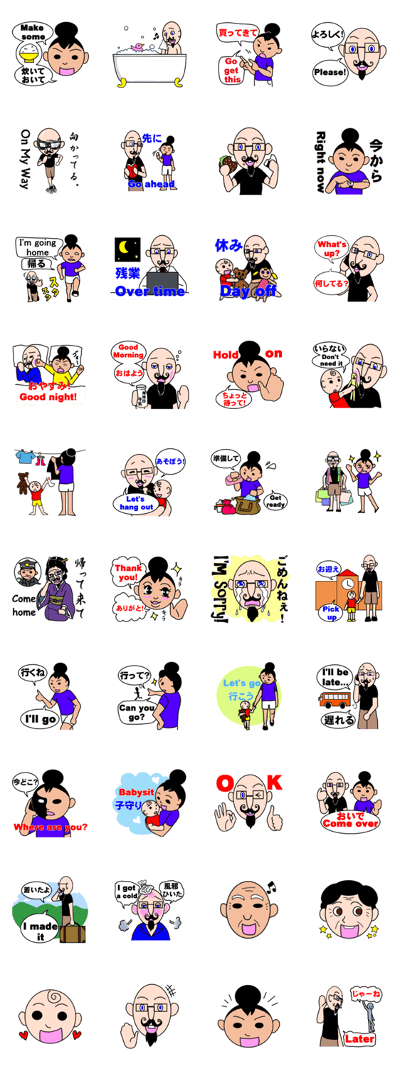 バイリンガルスタンプ(家庭向け) 柏井清音 コメントをどうぞ 小さい子供のいる日米カップル向け。スタンプだけで何となく意志疎通できるようになればいいな、と思って作りました。 このスタンプどう思う?!↓クリックで投票♪好き (0)かわいい (0)かっこいい (0)おもしろい (0)使いやすそう (0)欲しい (0)萌え (0)ほっこりする (0)おしゃれ (0)ゆるい (0)こわい (0)ウザい (0)キモい (0)ムカつく (0)持ってる (0)癒される (0)セクシー (0)個性的 (0)私は買わない (0)誰かプレゼントして! (0) 購入・プレゼントする Facebookでシェア Twitterでシェア