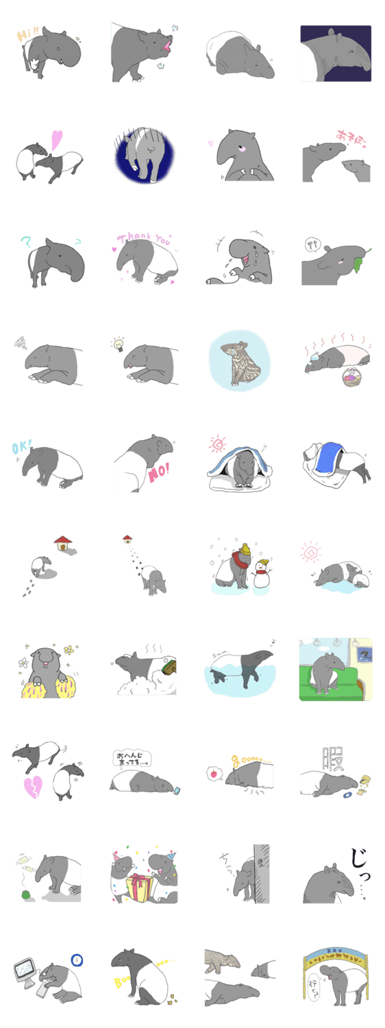 バク、始めました。 えびちゃを コメントをどうぞ ありそうでなかったマレーバクだけのスタンプ。ちょっぴりリアルだったり、どことなく可愛かったり、そんなスタンプです。 このスタンプどう思う?!↓クリックで投票♪好き (0)かわいい (0)かっこいい (0)おもしろい (0)使いやすそう (0)欲しい (0)萌え (0)ほっこりする (0)おしゃれ (0)ゆるい (0)こわい (0)ウザい (0)キモい (0)ムカつく (0)持ってる (0)癒される (0)セクシー (0)個性的 (0)私は買わない (0)誰かプレゼントして! (0) 購入・プレゼントする Facebookでシェア Twitterでシェア